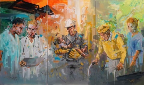 Health workers for triple billion goals: live-art painting installation with contemporary artist Dairo Vargas