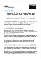 The Hand Hygiene for All Global Initiative aims to implement WHO’s global recommendations on hand hygiene to prevent and control the COVID-19 pandemic and work to ensure lasting infrastructure and behavior. This WHO and UNICEF-led initiative calls for countries to lay out comprehensive roadmaps that bridge together national COVID-19 preparedness and response plans with mid- and long-term national development plans to ensure hand hygiene is a mainstay beyond the pandemic, as part of infection prevention and control (IPC) and water, sanitation and hygiene (WASH) efforts. It also proposes a framework for coordination and collaboration among global and regional partners, with the primary aim of supporting and growing country-led efforts and investments.